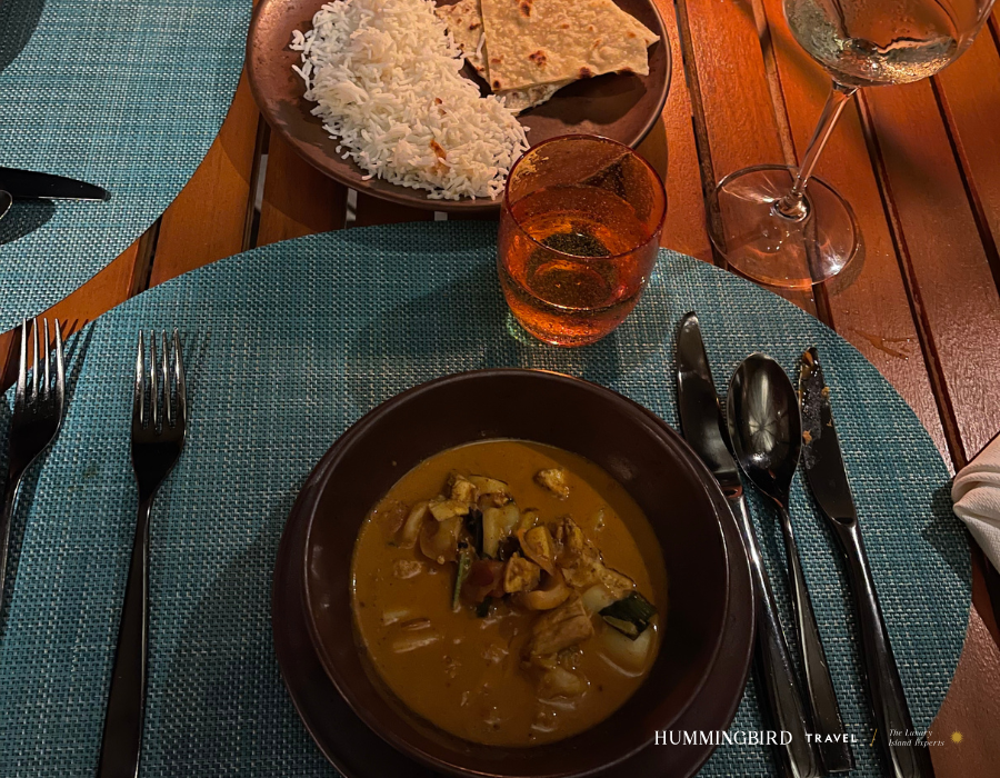 Our final evening included Maldivian Night at Cayenne Grill, where the make-your-own curry station was a standout, incredibly fresh, flavourful and interactive. A thoughtful surprise of Baros merchandise in our villa that night was the perfect final touch.