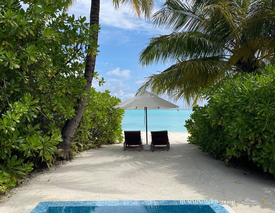 We stayed at Niva Velassaru for two nights in a Beach Villa with Pool, and it quickly became one of my favourite stops of the trip. The villa was beautifully designed, with a lush outdoor bathroom, private pool and direct beach access completely secluded and serene.