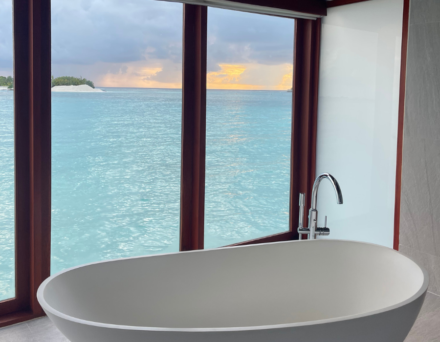 Baros was the most intimate resort we visited, and from the moment we arrived, it felt incredibly personal. After check-in with cold towels and juice, we were taken to our Beach Villa with Pool, which I absolutely loved, the outdoor bathroom and direct ocean access felt unbeatable. Baros never felt crowded, even at high occupancy, and the service was exceptional throughout.