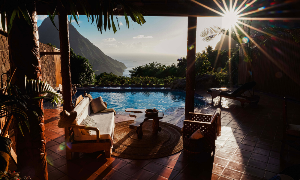Perched between the Pitons, Ladera offers unrivaled views with suites that open to the mountains and sea. Featuring private plunge pools, hand-carved furnishings, and natural materials, it’s eco-luxury immersed in Saint Lucia’s iconic landscape.
