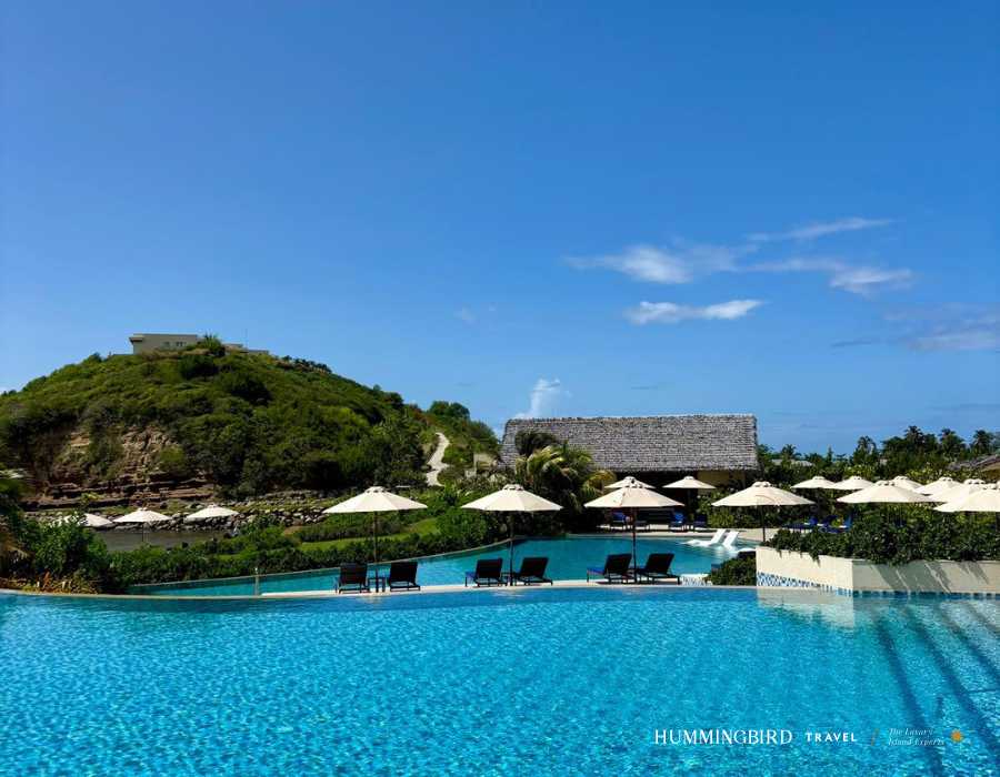 "Six Senses La Sagesse is a great option for a wellness retreat by the ocean. The Six Senses Spa is a tranquil space by the calm waters of the lagoon, with hot and cold pools to enjoy pre and post treatment. This property would make a great twin centre with a hotel on Grand Anse Beach like Spice Island Resort & Spa for guests looking for a wellness program paired with a relaxing beach break."