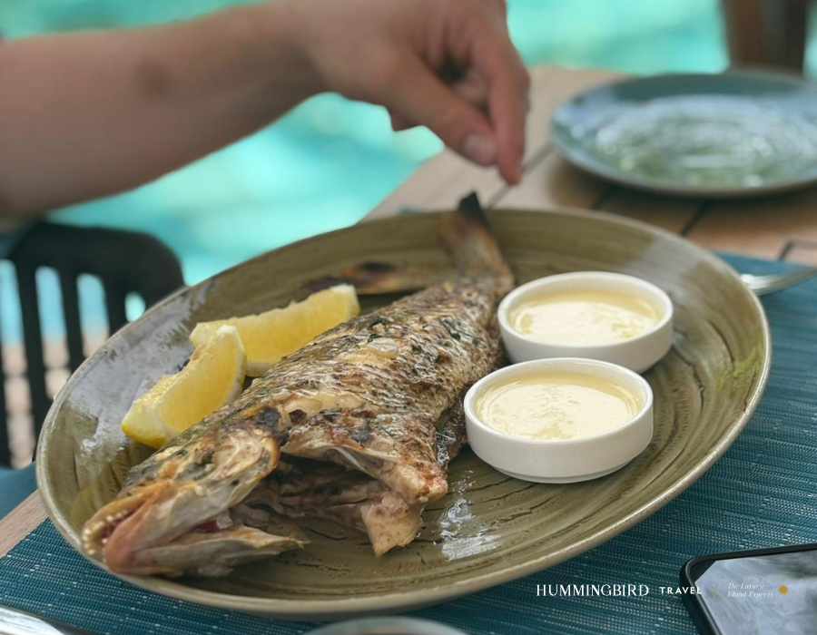 It’s incredibly spacious, which is very elegantly designed but not to distract you from the beautiful views you have of the ocean right on your doorstep. What I loved most about this villa type is that you have a private pool but it’s to the rear garden side which is directly outside of your bathroom. This is perfect for those that are looking for ultimate privacy, in your own sanctuary whilst still having the sunshine all day. One of the real standouts for me at Vakkaru was the sheer amount of thought that goes into making everyone’s stay so personal. From the pillow menu & “His & hers” amenities in the room to all of the activities like padel, sunset fishing cruises & an extraordinary wine tasting experience in the famous Vakkaru Reserve – there really is something for everyone!