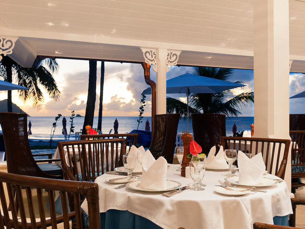 Overlooking Cariblue Beach and the Caribbean Sea, Cariblue Restaurant offers a versatile dining experience suitable for a range of guest preferences. Breakfast and lunch are served buffet-style, with daily lunch themes highlighting Mediterranean, Asian, Mexican, and West Indian cuisine. An enclosed, air-conditioned buffet area extends the main dining space for added comfort.