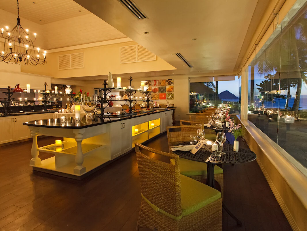 In the evenings, the Cariblue buffet area transforms into the chic and intimate Cariblue Windows, offering a carefully curated tasting menu with optional wine pairings available at a supplemental cost. Guests can choose live-action station seating to observe chefs at work or enjoy banquet seating with oceanfront views, all within the comfort of an air-conditioned space.