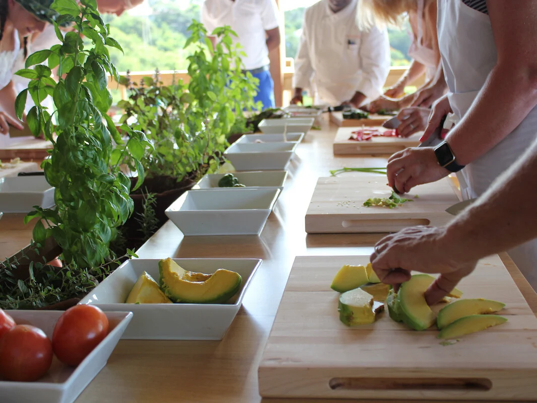 This immersive experience begins with a guided walk led by trained gardeners through the resort’s hillside organic garden, nestled within a deciduous dry forest. The garden features a polyculture of diverse local and exotic edible plants, cultivated with sustainable practices to enrich the soil and produce high-quality, nutrient-dense ingredients.