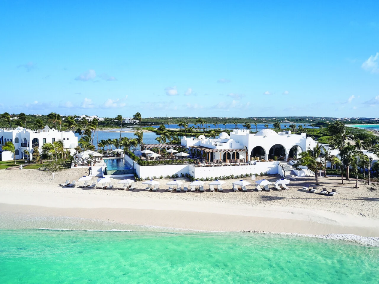 For barefoot luxury, nowhere surpasses Cap Juluca, a Belmond Hotel, in Anguilla. The iconic Caribbean resort nestles on Maundays Bay in the island’s southwest corner, where white sands meet turquoise waters. The island's warm intimacy is reflected at Cap Juluca, where many of the smiling employees have been with the hotel since its opening in 1988. Accommodation is spread across Greco-Moorish villas. Every room enjoys a private terrace overlooking the sea and two reserved loungers on the beach. A number of suites and private villas have inviting freshwater pools. The resort has a stunning infinity-edge pool and rejuvenating treatments at the spa are inspired by ancient Arawak rituals. For the active, sports include tennis and beach volleyball. The fitness centre offers personal training and yoga classes. A Greg Norman-designed golf course is close by. To get out on the water, training and equipment can be provided for everything from scuba diving and kayaking to windsurfing and waterskiing. Hobie Wave catamarans and Sunfish sailboats may be chartered for a day of drifting around Anguilla’s beauty spots. Exceptional dining options include classic Italian and laidback Caribbean. A weekly beach barbecue is enlivened by reggae beats. Tailor-made tours can be arranged to fascinating heritage sites and vibrant nightspots, or the neighbouring island of St Martin.NEW OPENING! We are thrilled to share the introduction of the new Cap Juluca Spa by Guerlain, unveiled in 2024! Drawing inspiration from Anguilla’s Arawak tribe, the spa harmoniously blends nature’s beauty with Guerlain’s renowned wellness rituals, offering a serene escape that rejuvenates both body and mind. The spa features: - 7 treatment rooms - A beauty salon - A wellness suite - Multi-temperature plunge pools - A thermal suite - A Guerlain boutique - A stunning rooftop infinity pool