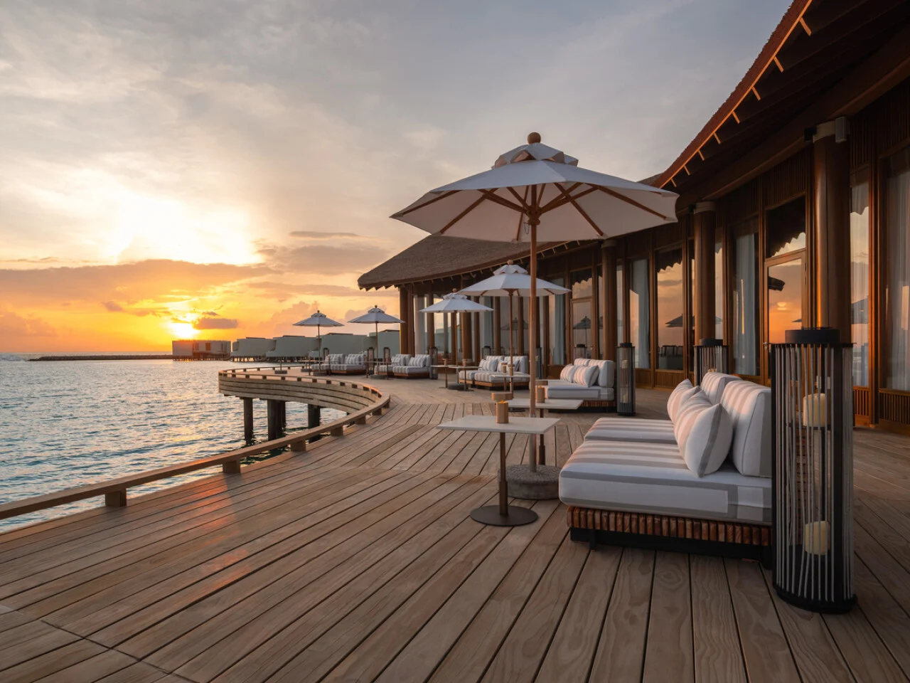 Immerse yourself in unparalleled comfort with the 290 sqm Three-Bedroom Sunset Overwater Pool Residence. Perfect for larger groups or extended families, this haven features three bedrooms, a private outdoor deck and pool, spacious bathrooms, a separate living and dining area, and a well-appointed kitchenette, inviting shared moments of relaxation and togetherness amidst breath taking ocean vistas.