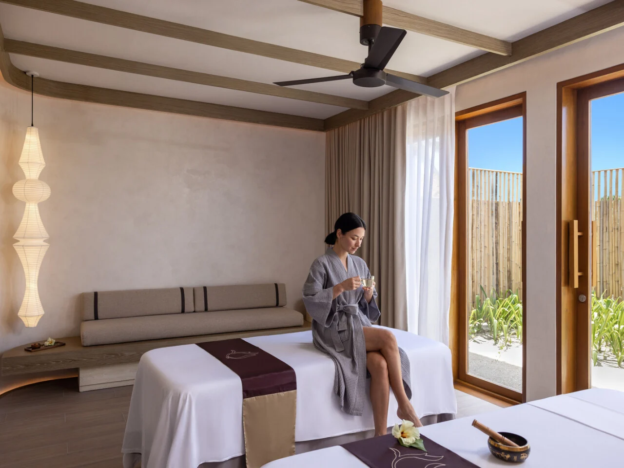 Revel in panoramic ocean views from the Grand Two-Bedroom Overwater Pool Villa, offering 166 sqm of peaceful living space, a private pool for leisurely dips, modern bathrooms, and direct access to the lagoon for a refreshing swim in the crystal-clear waters. Ideal for families or groups seeking to embrace the natural beauty of the Maldives.
