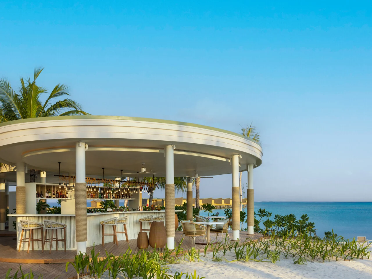 Wake up to the pastel hues of morning in the Overwater Sunrise Villa, with one king bed or a Hollywood twin bed, spanning 54 square metres including a stunning terrace. Slip into the Jacuzzi as dawn breaks, relax in the hammock or spend the day swimming in the sparkling ocean just steps from your room. Includes Destination Club access.