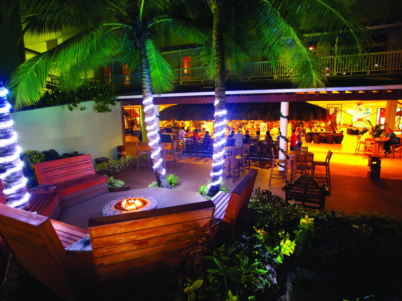 This air-conditioned piano bar and club features live evening entertainment and DJs spinning the latest tunes, perfect for dancing the night away. In addition to a full bar and custom cocktails, Peter John’s showcases the new Rums of the Caribbean, Coconut Bay’s unique collection of the region’s finest rums. Just outside, the Stargazers Lounge offers cozy seating and a fire pit, creating the perfect setting to enjoy fine rum, good times, and, of course, the stars.