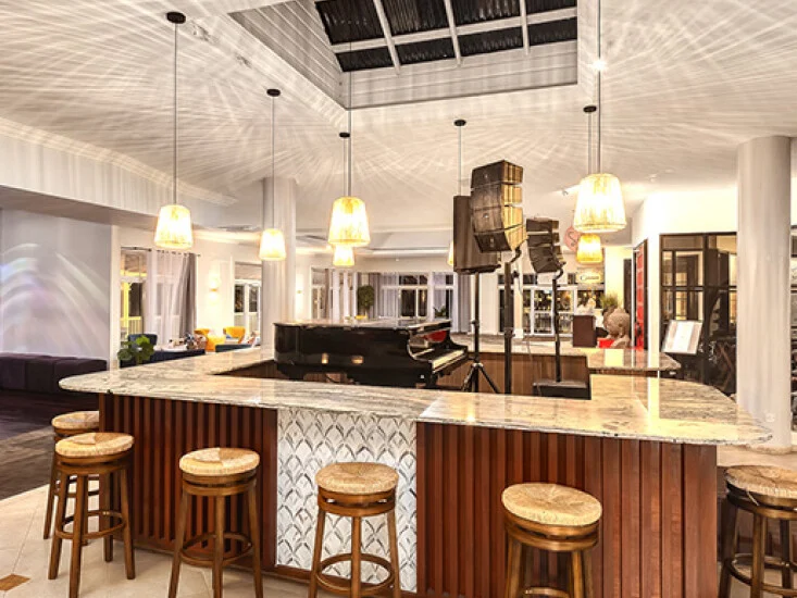 Seasons Veggie Bistro celebrates vibrant vegetarian and vegan cuisine with an authentic farm-to-table ethos. Over 90% of ingredients are locally sourced, complemented by produce from the resort’s on site greenhouses, with nightly specials inspired by seasonal island flavours such as callaloo, dasheen, jackfruit, and passion fruit. A highlight of the experience is the interactive tableside hummus preparation, where guests create their own blend using a traditional mortar and pestle. Fresh, nourishing, and full of flavour, Seasons offers a mindful dining experience for vegans, flexitarians, and curious food lovers alike.