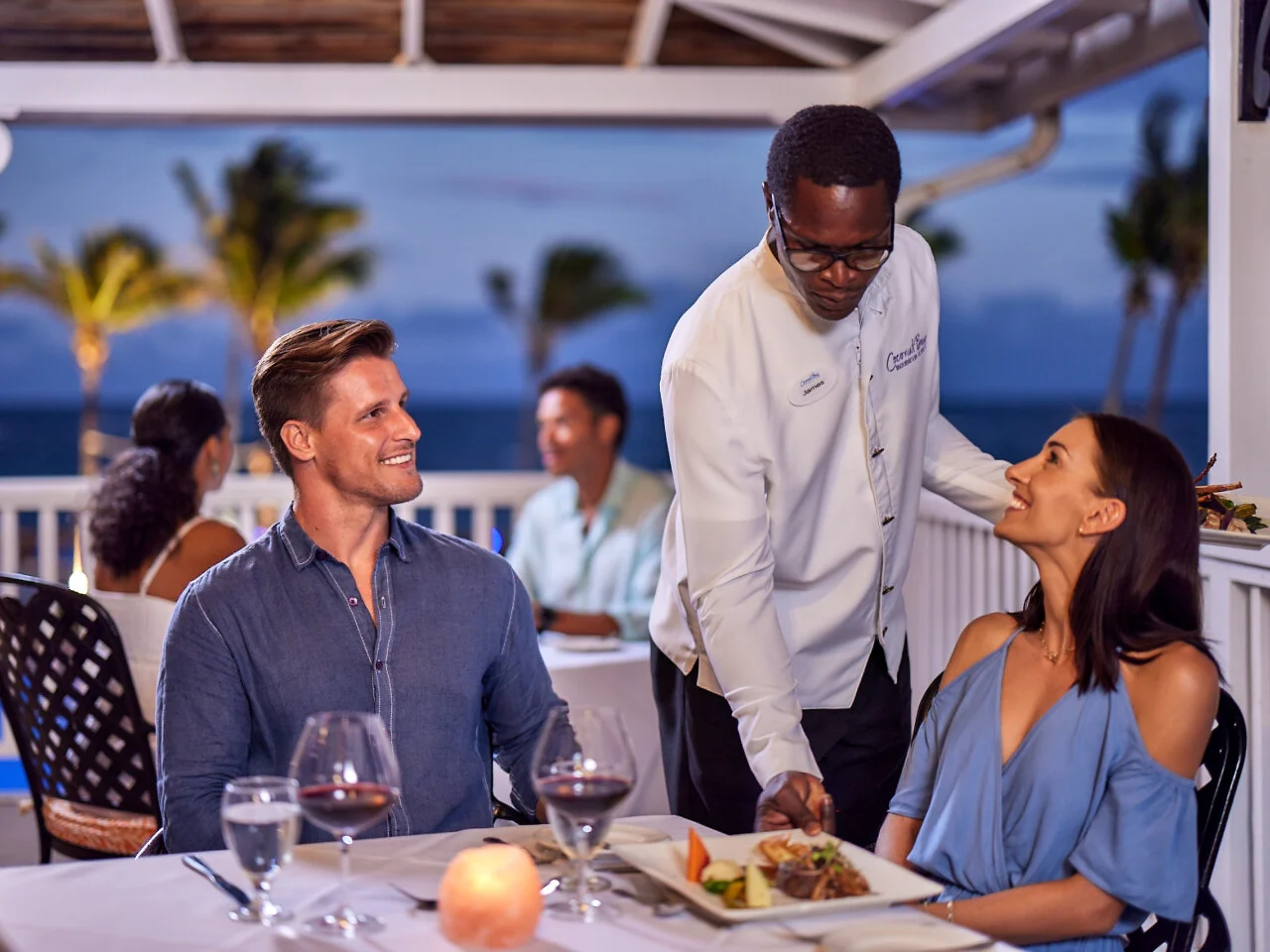 Calabash offers a contemporary Caribbean menu infused with vibrant Latin flavors. The chef highlights fresh, local seafood such as snapper, tuna, and marlin in daily specials, while herbs, microgreens, tomatoes, and bok choy are sourced from the resort’s own greenhouses. Dishes like crispy coconut shrimp, coated with freshly harvested coconut and drizzled with citrus-ginger beurre blanc, and jerk-spiced chicken fritters served with sweet raisin chutney, deliver a true taste of tropical paradise. Dinner: 6:00 pm – 9:30 pm