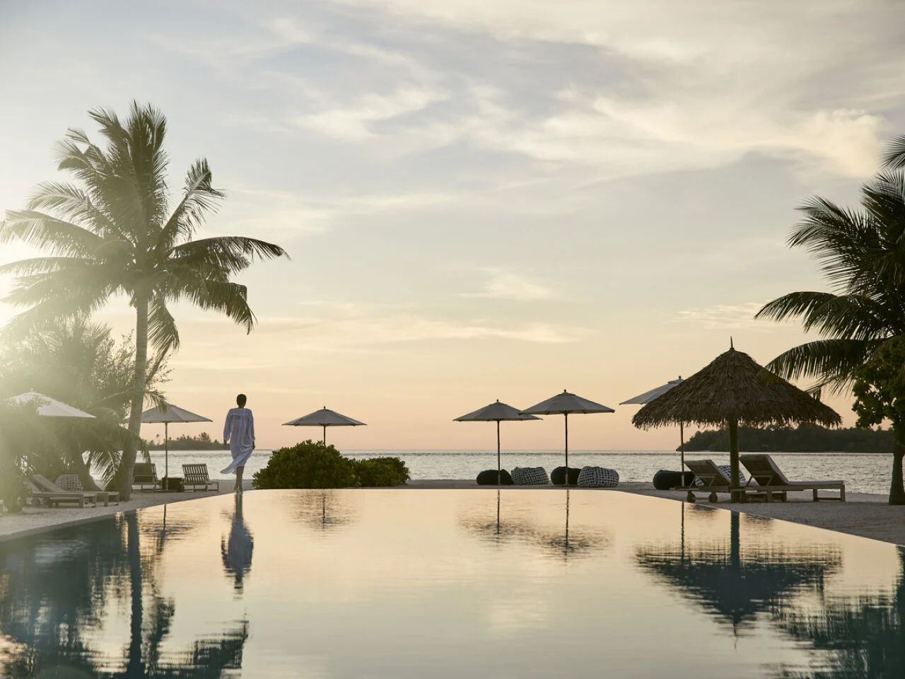 The two-bedroom COMO Sunrise Villa has separate wings, each featuring an en suite bedroom and a private terrace directly above the ocean. The wings are connected by the living and dining areas, with balconies on either side that let you step directly off the deck into the turquoise lagoon. There’s also a secluded deck, with a new private pool that almost touches the edge of the ocean.