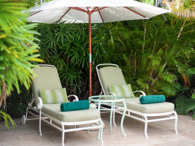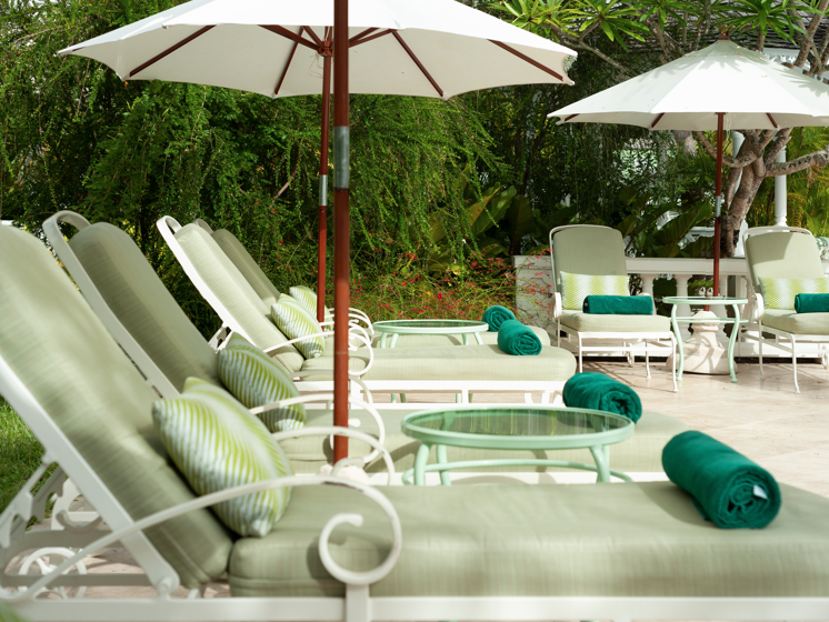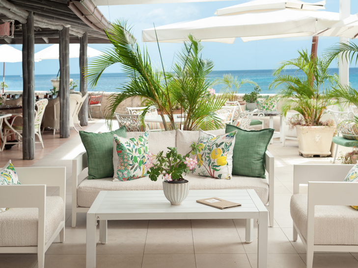 Cottages on the ground floor or suites on the first floor consisting of a king or twin bedded room, dressing area, en-suite bathroom with separate shower and tub, air-conditioned living room with sofa bed, large patio and private plunge pool. These Cottages can accommodate either three adults or two adults and two children. They are located in the front half of the gardens leading towards the sea. The majority are garden view.
