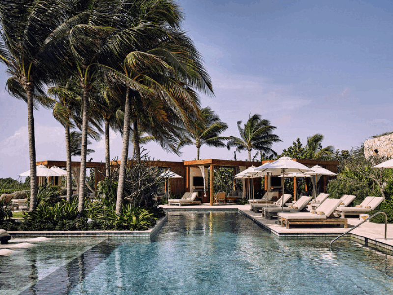 Guests can gather over innovative Mexican dishes, enjoying the fresh, vibrant flavors of the region while taking in viridescent palm-framed views in an ethereal open-air setting, creating a dining experience that is both authentic and unforgettable.