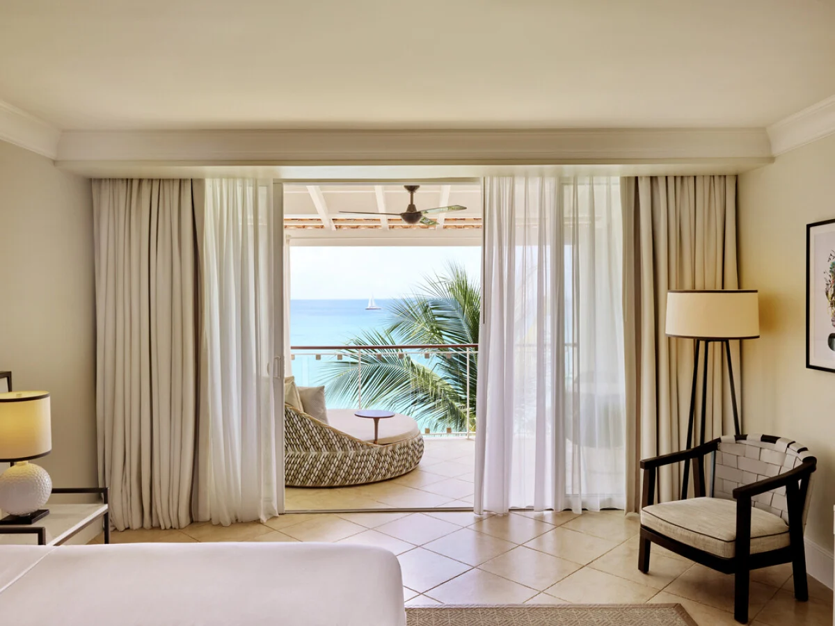 Located above the beach, on the 3rd floor of the resort, the stunning Signature Oceanfront Rooms offers spectacular unobstructed views of the ocean and the sky. Watch the sun and the moon rise, and the twinkling stars from the vista just outside the bedroom from the spacious glass-fronted balcony thoughtfully furnished with outside ceiling fan, sun loungers, and table with chairs perfect for a romantic candlelit dinner. Amongst the most spacious beautiful rooms in Barbados, these light, beach inspired havens are ideal for couples or families who seek the serenity of a holiday in the Caribbean directly on the beach. With views over the ocean and the sandy beach, every newly-transformed room features generous, private outdoor space. Most of the Signature Oceanfront Rooms are interconnecting, providing the ideal environment for friends or families travelling together.