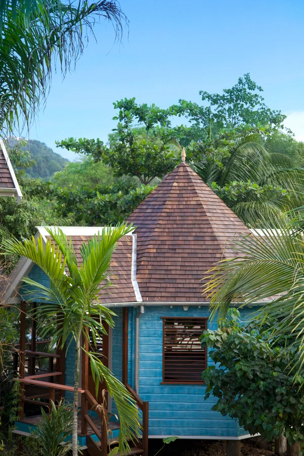 There are four Two Bedroom Beach Villas. Each opens directly onto Low Cay Beach. These two-story villas feature two spacious bedrooms (up and downstairs), both with king-size beds and en-suite bathrooms. The downstairs bedroom has an adjoining private garden with outdoor shower. Upstairs, the bedroom porch looks out to the sea. As with all Beach Villas, each is furnished with a full kitchen and private porch with outdoor dining table.