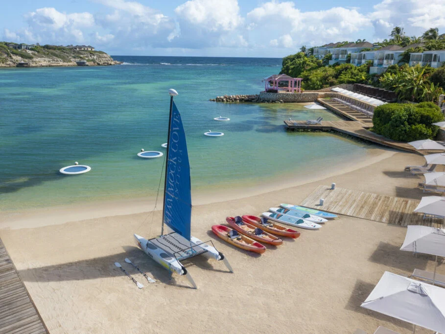 Hammock Cove Antigua is perfectly situated on Antigua’s northeast coast offering serene views of Devil’s Bridge National Park and the aquamarine Caribbean sea. As the island’s newest All-Inclusive, Adults-Only retreat, Hammock Cove Antigua raises the standard of island luxury to a refined level of tranquil serenity. With Michelin-star dining options expertly prepared by Chef Marco Festini, the vast array of Caribbean and Continental-style dishes are waiting. All meals, from gastronomy concepts to breakfast, lunch, dinner, afternoon tea and small bites, are expertly prepared to bring the same level of luxury to each and every dining experience. Pair chef’s table dinners, with a glass of wine from the Sommelier-curated wine selection, or enjoy a Caribbean-infused cocktail by the three-tier infinity pool.