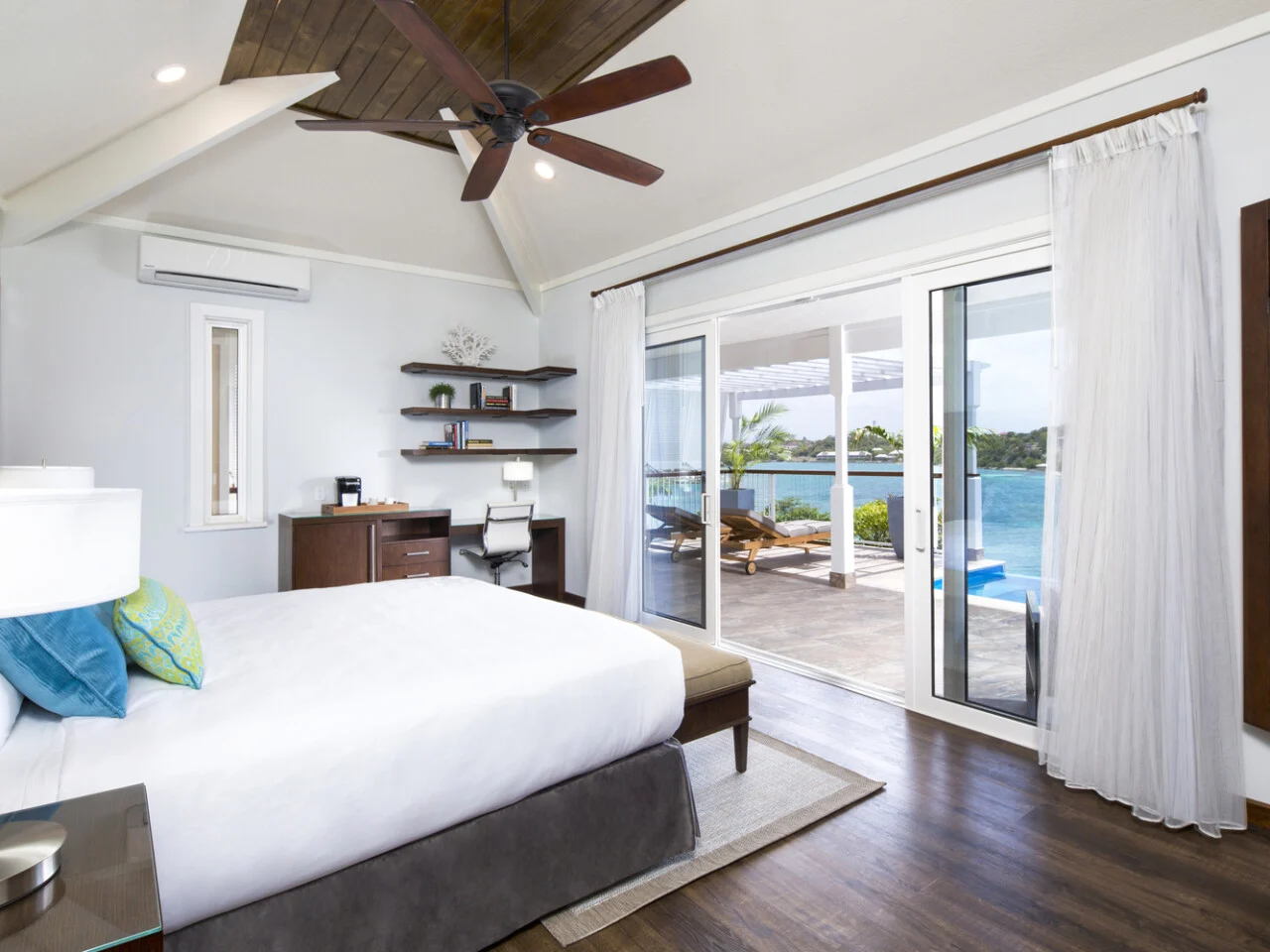 The Signature Villa is the most luxurious stay at the resort with a larger deck, oversized plunge pool and an indoor wet bar. This villa has spectacular beach and bay views, separate desk to bedroom areas and 1,490 sq. ft. indoor-outdoor living space.
