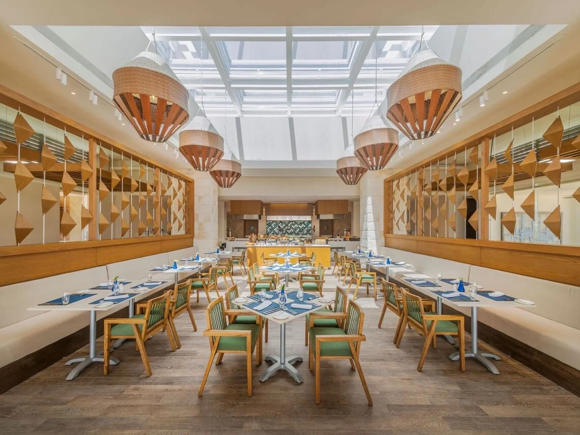 Flavours Marketplace offers an abundant selection of delicious dishes in a relaxed, comfortable, and uniquely inviting setting. Designed as a vibrant social hub, it is the perfect place to unwind and enjoy a variety of favourite dishes throughout the day. Featuring diverse culinary stations, the marketplace showcases artisan creations and local specialities, all prepared fresh in an open, expansive kitchen where guests can observe the chefs at work. Blending indoor and outdoor spaces, the atmosphere combines modern design with authentic Mexican cultural influences, creating a lively yet welcoming dining experience. Flavours Marketplace brings together comfort, variety, and culinary creativity in one engaging destination.