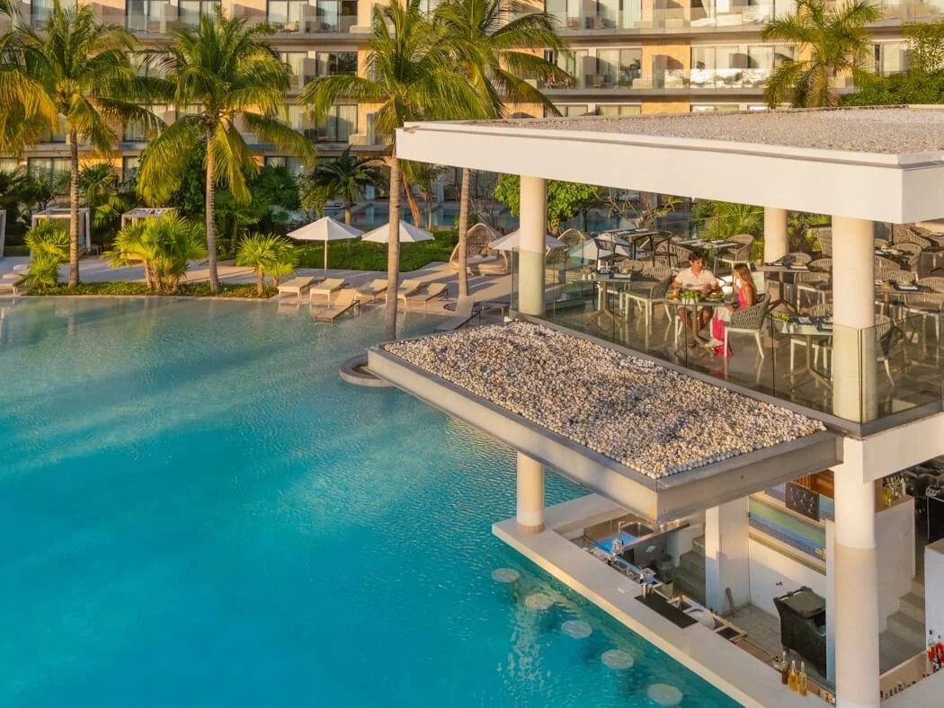 Set within the resort’s serene oval pool, Vistas Pool Bar offers a relaxed swim-up experience where guests can enjoy refreshing drinks without ever leaving the water. Serving a selection of beers, wines, and signature beverages, it is designed for effortless indulgence under the sun. With spectacular ocean views as its backdrop, Vistas provides the perfect setting to unwind and soak up a sun-drenched day by the pool. Combining comfort, convenience, and scenic beauty, it is an ideal spot for laid-back relaxation in a vibrant yet tranquil atmosphere.