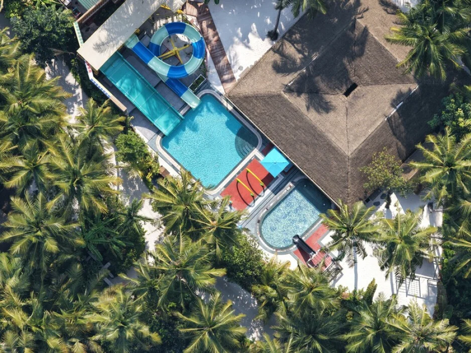After a day filled with adventures, guests can retreat to the serenity of their bedrooms for a restful night's sleep. This three-bedroom villa is an ideal choice for families. An unforgettable vacation awaits at this luxurious family resort in the Maldives.
