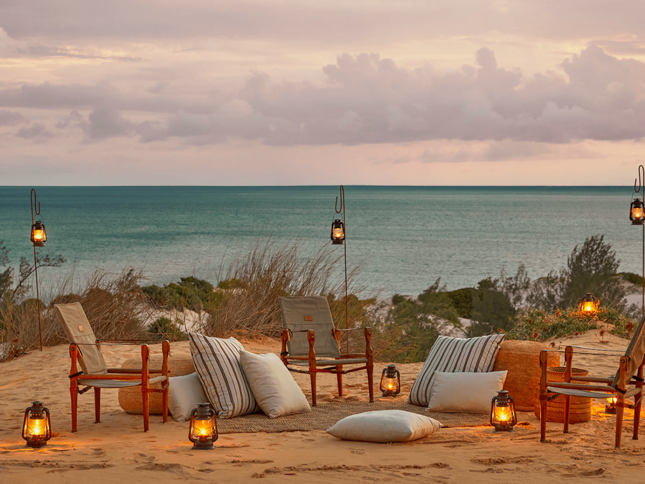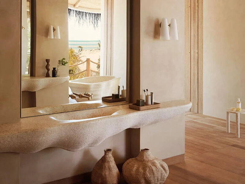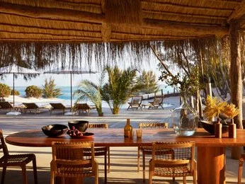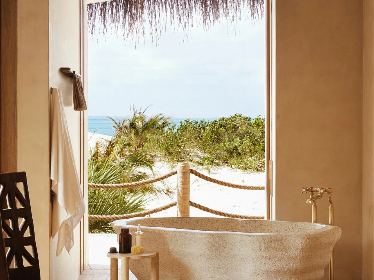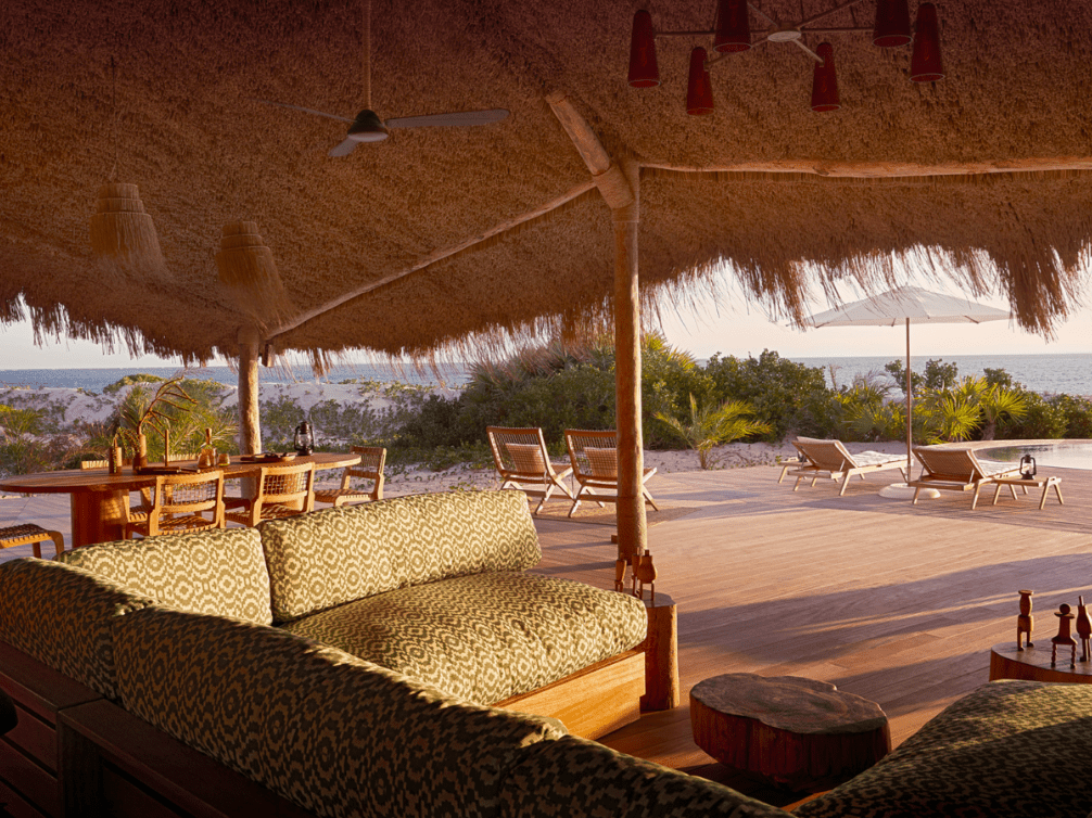 Two bungalows are connected via an open-air deck, with each bungalow featuring bespoke interiors, a generous living room, king bedroom, two dressing rooms and a joint bathroom. The founder's residence comes with a unique view of both the ocean and the cove sides of the island, a larger private plot and includes personal touches such as a pan-African antiques and art collection.