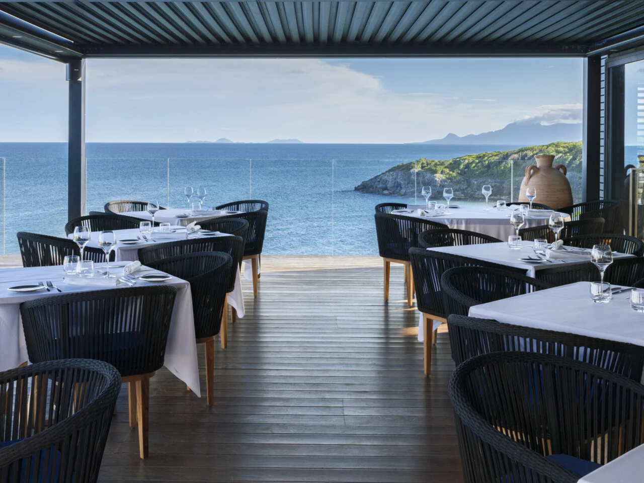 Open all day long, the bar, Bar de la Mer, is the ideal place for an elegant break or an aperitif in front of the sunset in Sainte-Anne. On the menu: tropical cocktails, homemade rums, fresh juices and other creations inspired by local flavors. Whether you're coming for a refreshment during the day or a nightcap in the evening, the ambiance is always soft, between golden light and sea breezes.