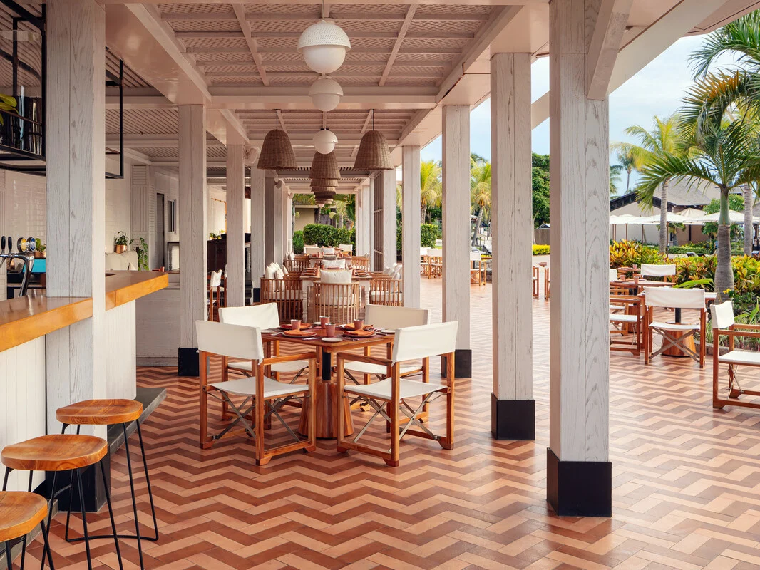 Nomad restaurant offers its guests 360-degree views of the open kitchen. With a focus on "à la minute" cuisine, this restaurant serves a wide-ranging menu of local Mauritian dishes and international fare for breakfast and dinner.