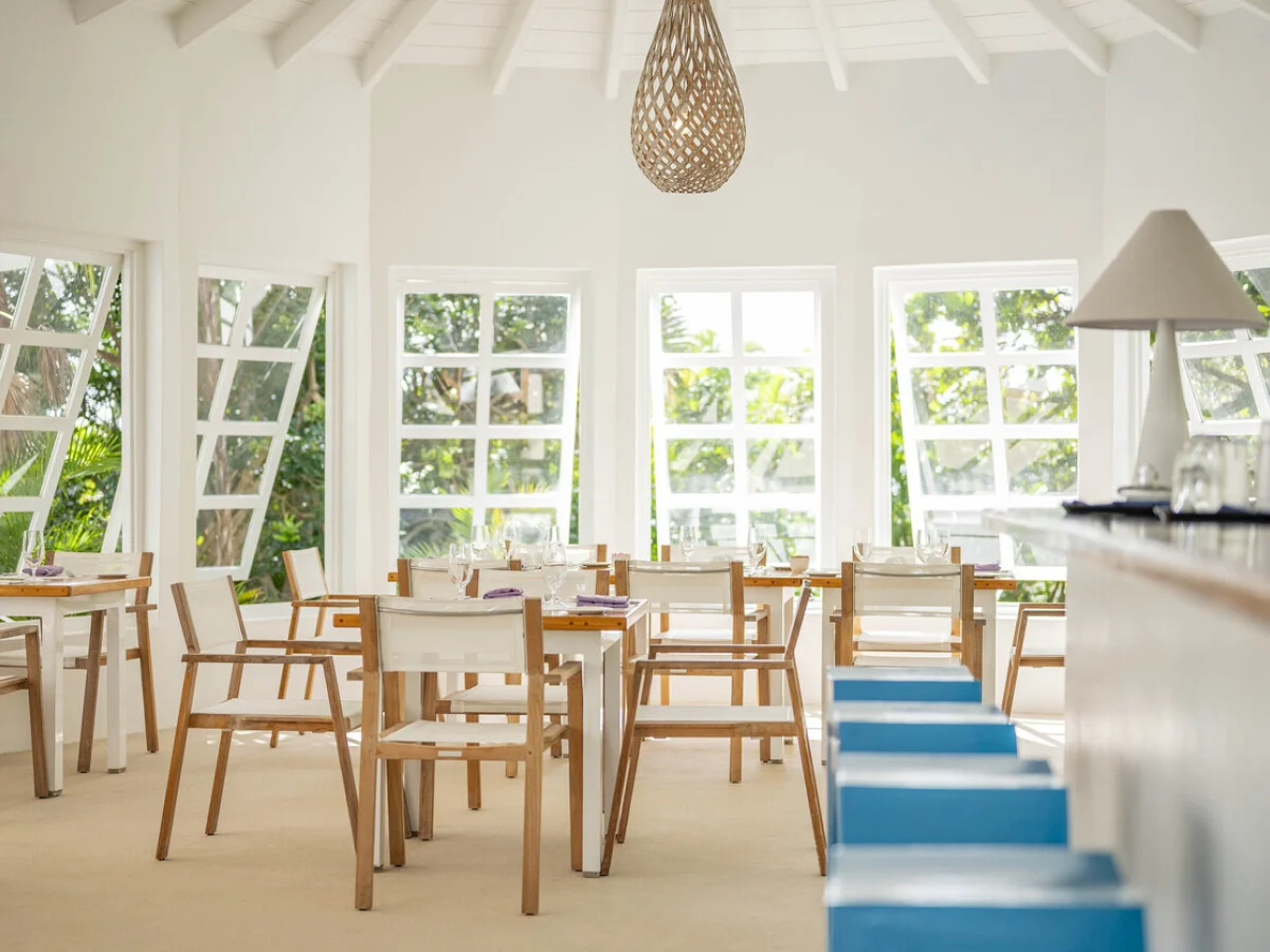 The Terrace opens onto an open air setting with sweeping views across Charlestown, Nevis and the twinkling lights of nearby St. Kitts. Drinks are served in the Great Room before dinner moves outdoors, where light, contemporary cuisine showcases local ingredients, herbs and spices. Menus are thoughtfully designed with flexibility in mind, offering a range of dietary options, while food and wine pairings are approached with a considered, understated elegance.