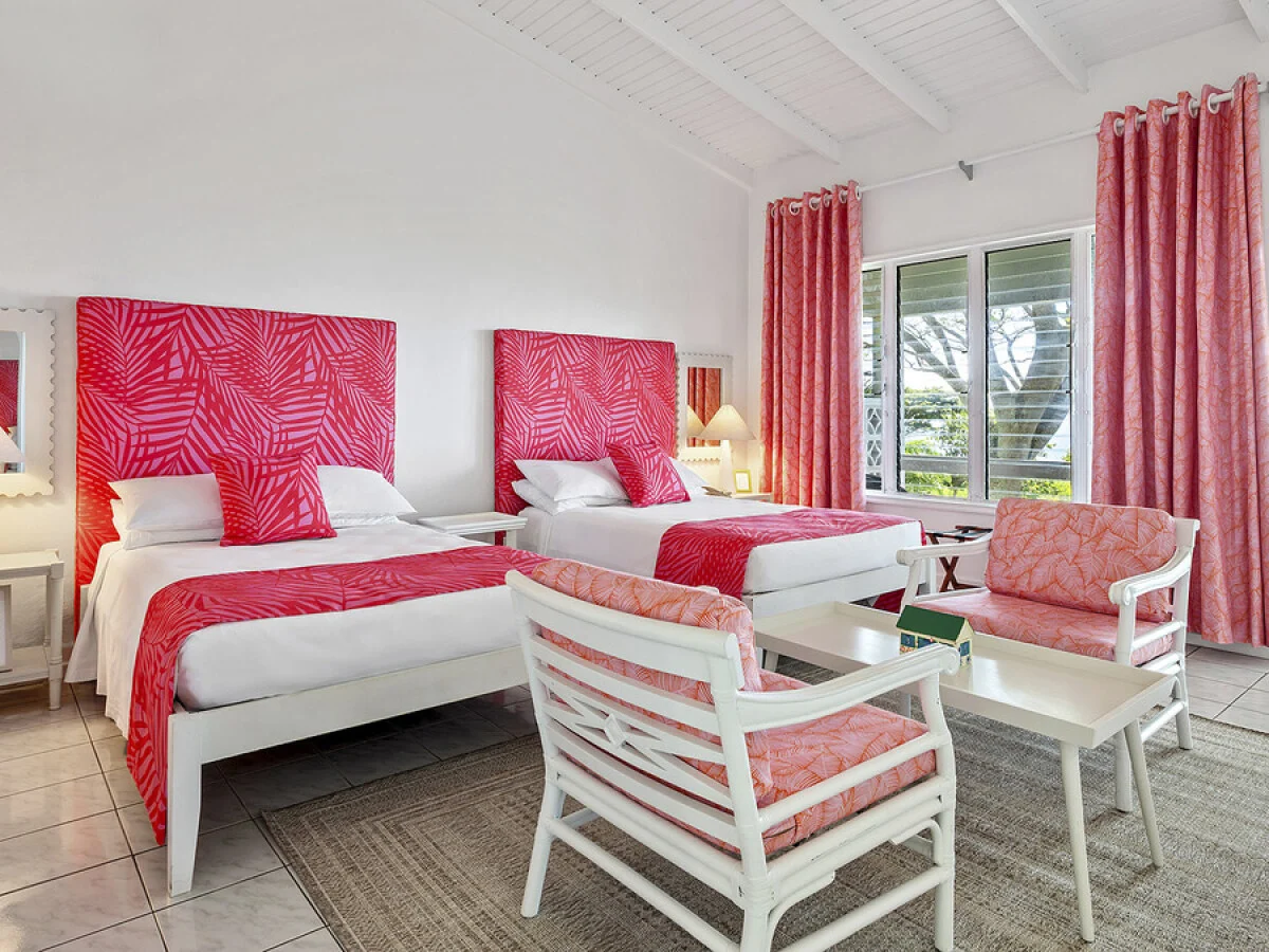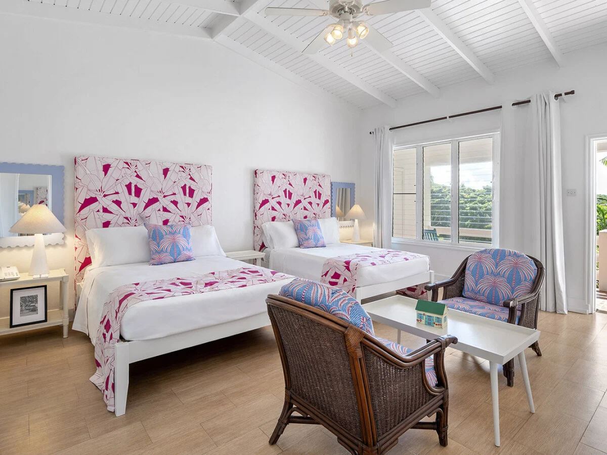 540 square feet. Offering outdoor verandas looking out towards the ocean, the Plantation Rooms are a bit more spacious from the Premier Rooms. Six Plantation Rooms were recently redecorated for the 2014/2015 sea- son. Spearheaded by Martyne Kupciunas of Miami! The Design Garden, each new room sports its own distinctive accents and elements; complemented by a cool, grey palette with splashes of color including Trina Turk fine fabrics.