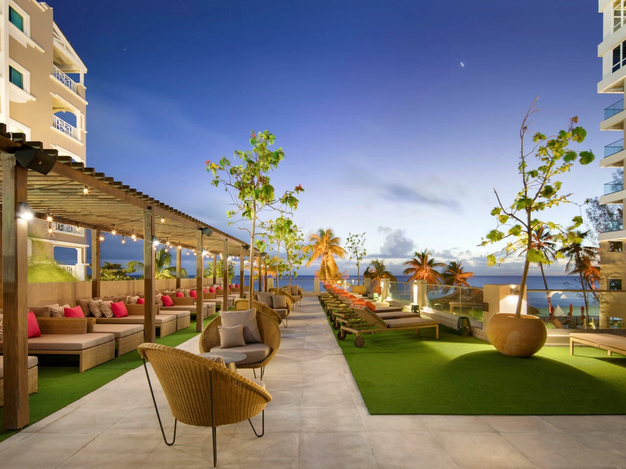 These elegant and spacious suites feature an oversized king bed with large bathroom with a rainfall shower. A separate sitting room with a queen sleeper sofa a dining area which accommodates four people. They also feature a residential style kitchen with ice machine & chilled filtered water, and a large furnished balcony. The view is stunning and a direct oceanfront view of the Caribbean Sea.