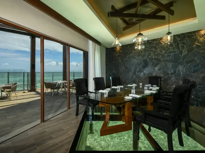 Set within a uniquely designed overwater space, complete with private lounges and glass floors revealing vibrant marine life below, every meal becomes a sensory journey. From sunrise breakfasts to sunset dinners, each moment is framed by breathtaking views and unforgettable ambiance.