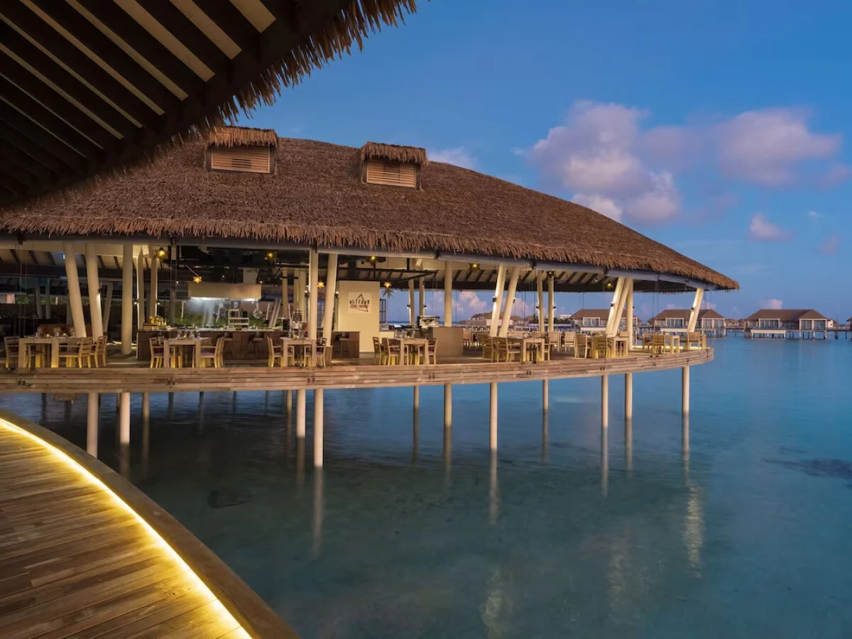 Perched overwater, Raha is the go-to place for a relaxed and comforting meal any time of the day with an elegant dining room extending onto an open-air terrace with lagoon views. Start your morning with a vibrant market buffet, with live cooking stations, pastries fresh from the oven, and an array of tropical fruits and juices. Enjoy culinary wonders from around the world for dinner, including selections from the wok and grill.