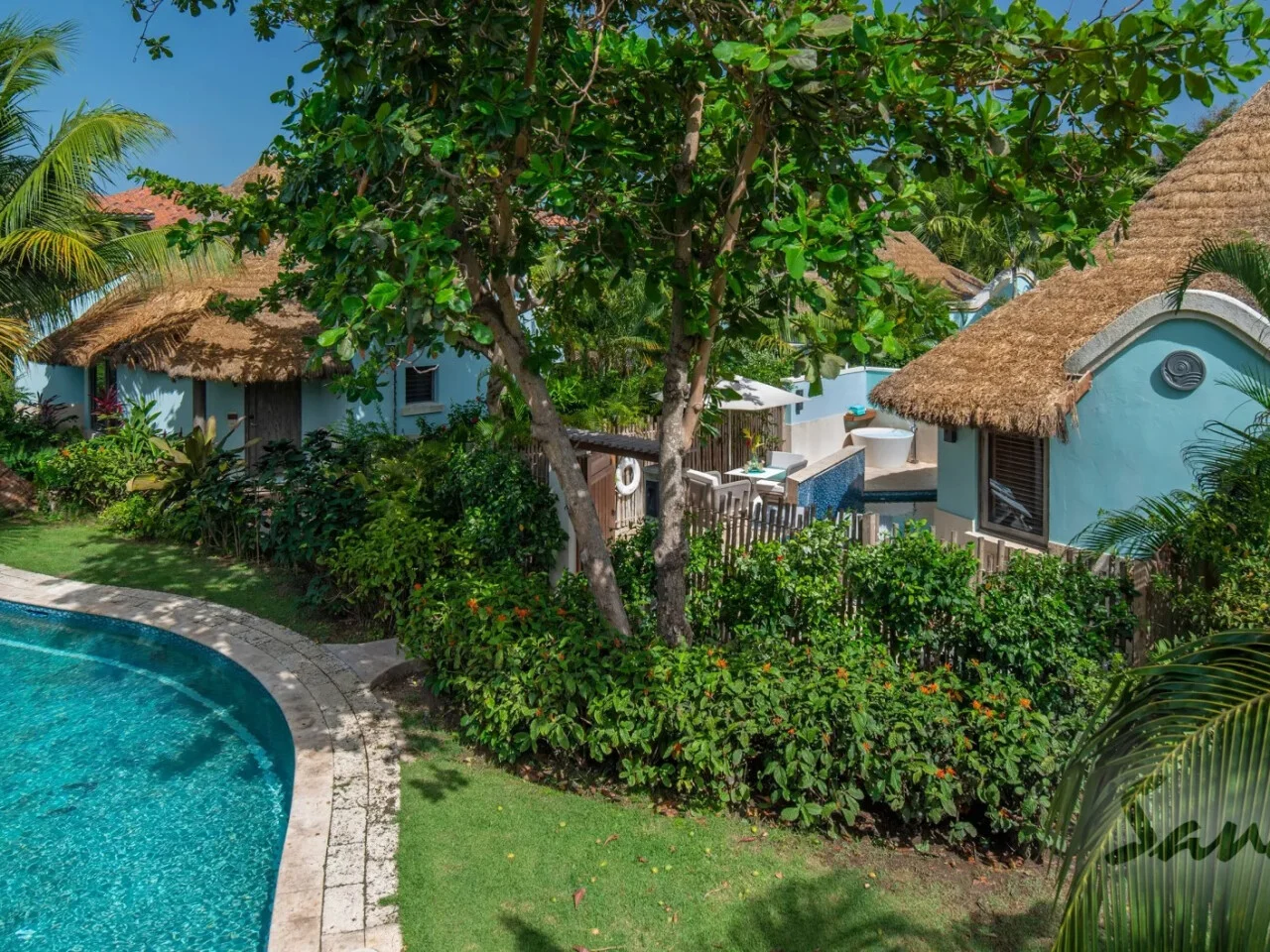 These romantic Club Level suites are set on the second floor of the Cassia building and grant serene views of the Crystal Lagoon pool and lush resort gardens. Inside, each suite features custom crafted furnishings including a king-size bed, smart TV, sitting area, a large walk-in closet and bar fully stocked with premium liquors and wine. The elegant bathroom features a walk-in rain shower, freestanding vanity with backlit mirror, and a water closet enclosed in frosted glass. Outside, the balcony presents a freestanding Tranquility Soaking Tub for two, a chaise lounge, a bistro set for two and privacy curtains. Guests enjoy Club Sandals concierge services including private check-in, all day in-room dining, and access to the Club Sandals Lounge.