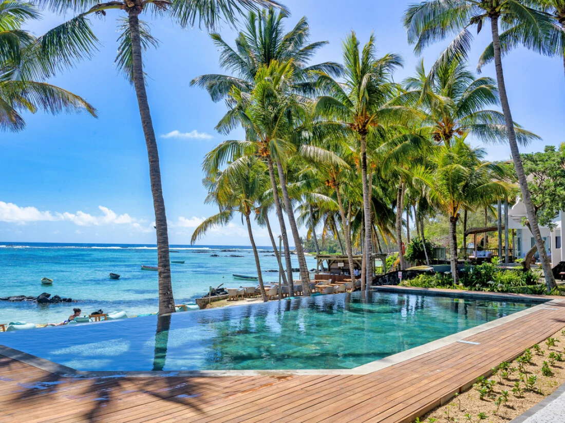 Seasense Boutique Hotel is a beachfront property on Palmar beach's east coast, featuring 59 rooms across 2 levels. The hotel includes 3 Restaurants, 2 Bars, a Lounge, Reception, Boathouse, and Spa. Set in a spacious tropical garden, it offers a picturesque view on one of Mauritius' famous golden beaches. With an Adults-Only concept, the hotel provides 20 Charm rooms, 21 Deluxe rooms, 11 Suites, 2 Junior Suites, and 5 Senior Suites, catering to various accommodation preferences.