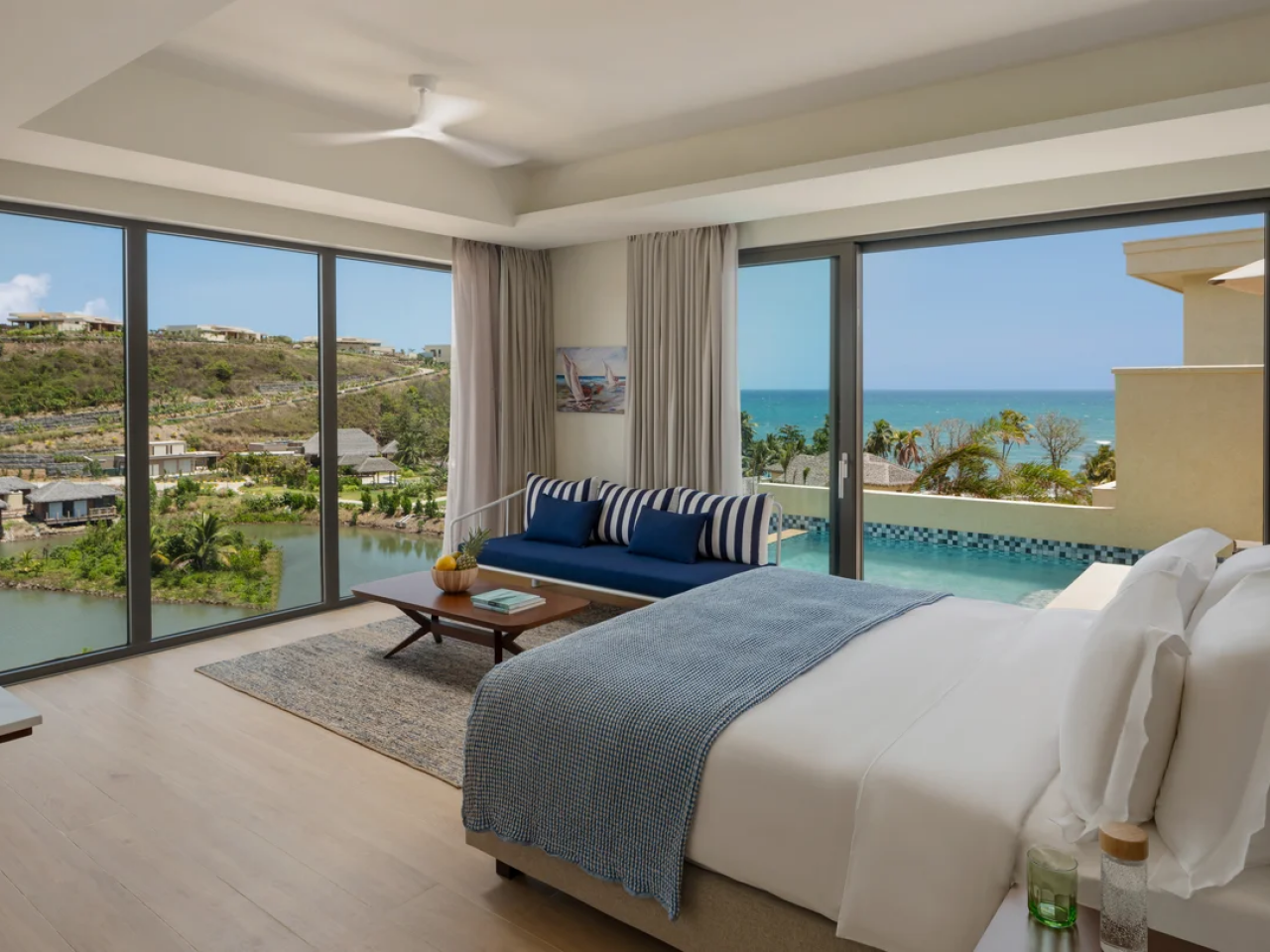 Six Senses is the perfect hideaway hotel in Grenada. Nestled in to the hills you are completely surrounded by stunning views of the ocean. The hotel is very focused on sustainability and wellness. You can opt for morning Yoga, sound healing or take a trip to the botantical lab to make scents and lotions. The rooms at Six Senses all have their own pools and depending on the location views to die for. You have the option of a relaxed atmosphere by the pool with cocktails and rum punch, Spa days in the over lagoon spa or if you love water sports you can Kayak and discovery the beautiful bays and costlines of Grenada. The food at Six Senses is a real treat with optins of family style Chefs choice dining or the buffet in the main restaurant.