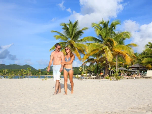 The Premium Beachfront Room is designed for those who prefer stepping into a tranquil atmosphere. The mahogany bedroom furniture includes a traditional king-sized four-post bed, a large dresser, a Durban side chair, lounge chair and ottoman. Fabrics reflect the Caribbean with soft pastels and brightly coloured accents. Bathrooms are large with marble vanity and walk-in shower. All with a stunning beachfront view of the Caribbean Sea.