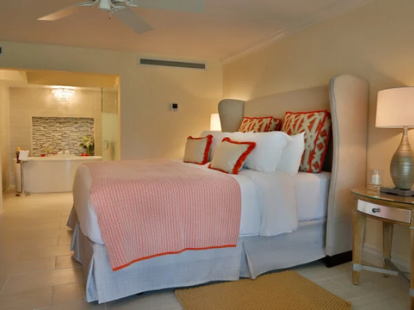 A spacious deck with sights of the seaside pool, the Caribbean Sea and the tropical gardens comes as a standard in these well appointed and superbly located rooms. Situated on the ground floor, the Poolside Suites are among the most sought-after. These opulent suites feature large bay floor-to-ceiling glass doors which let in refreshing island breeze and maximise natural light and views. Tastefully outfitted with the finest hardwood furniture, a majestic king bed dressed in the finest linens, a chic en suite bathroom complete with soaking tub and dual vanities. With colours that ooze sophistication, guests will find a combination of homely comfort and exotic island charm. Tea and coffee making facilities, an iPod docking station and mini refrigerator are also available.