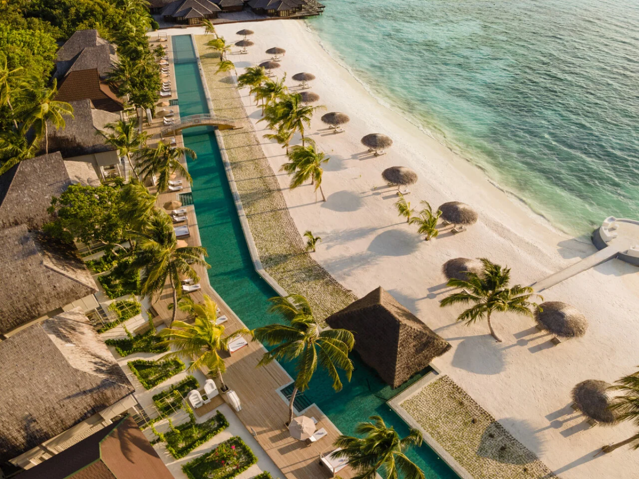 Wake up to the gentle hues of sunrise over the pristine Maldivian shores in our Beach Pavilion rooms at Sun Siyam Olhuveli. Perfectly designed for families, friends, or couples, this category offers versatile accommodation options with interconnected spaces featuring twin beds, ideal for families or groups seeking connectivity and comfort or elevated retreats with king-size beds, offering sweeping views and a touch of privacy. An exclusively accessible pool (135 meters) just steps from the Beach Pavilions, this serene oasis is perfect for refreshing dips or leisurely afternoons.