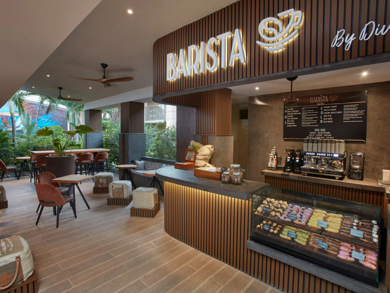 Discover Barista, a modern yet cozy open-air café designed for ultimate comfort. Guests are invited to indulge in bakery-fresh artisan creations, from delicate madeleines and decadent éclairs to flaky croissants and tempting muffins. This sophisticated and inviting space provides the perfect setting to enjoy high-quality specialty coffee and tea, offering a luxurious moment of escape in the heart of Tamarijn Aruba.