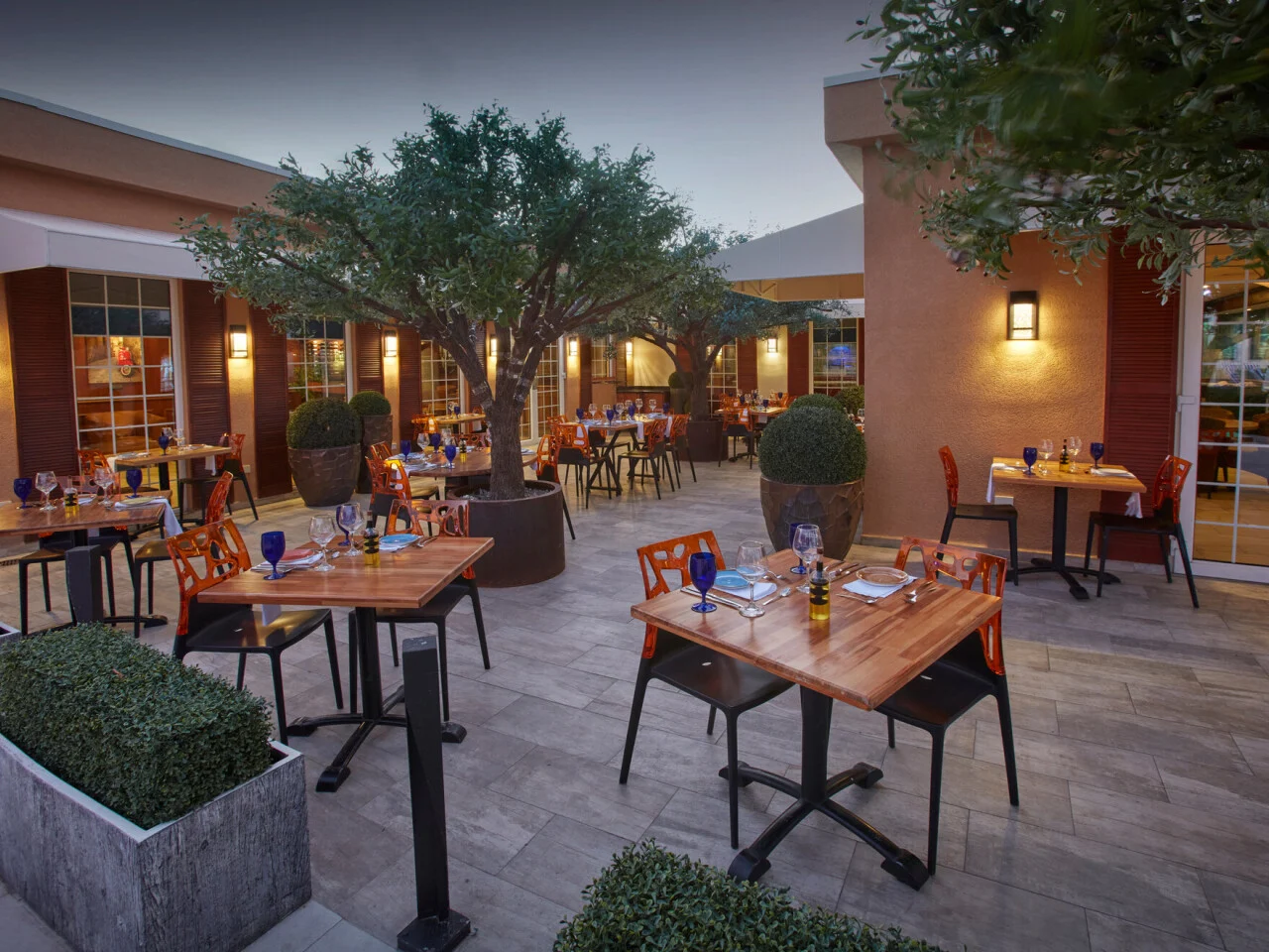 Dine poolside and savor authentic brick-oven pizzas crafted to your personal taste. Elevate your casual dining experience with the daily drink special while enjoying quality time with family, a romantic moment with a partner, or a relaxing solo evening. Late-night offerings include a variety of classic bar snacks, perfect for a light bite under the stars.