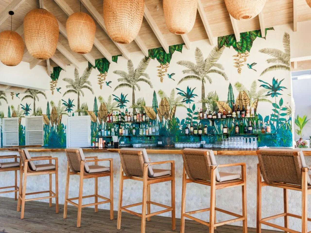 From morning mimosas to sunset mojitos, this open-air bar serves up a vibrant mix of cocktails and wines. As night falls, the bar’s ambiance transforms, making it the perfect spot to savor inventive drinks and dazzling ocean views under the starry sky.