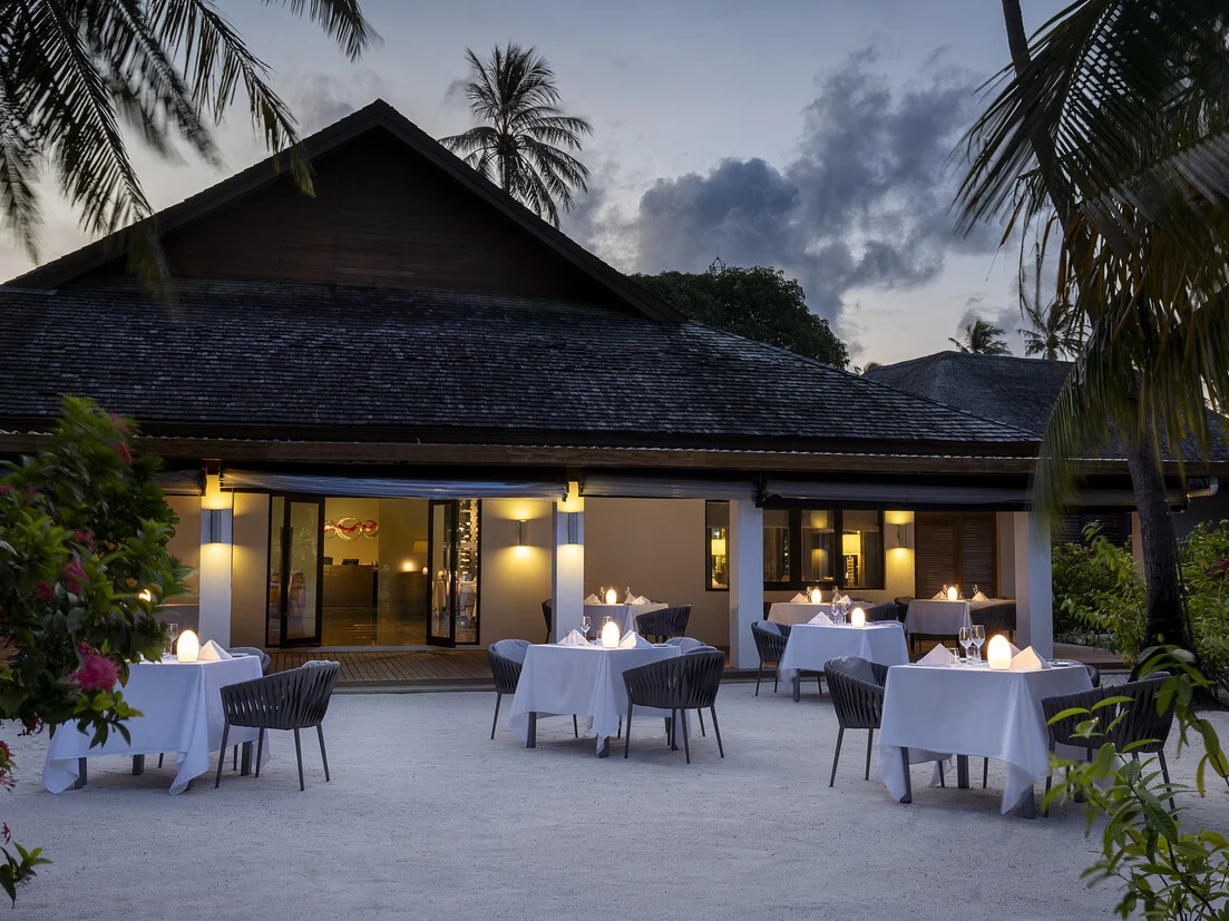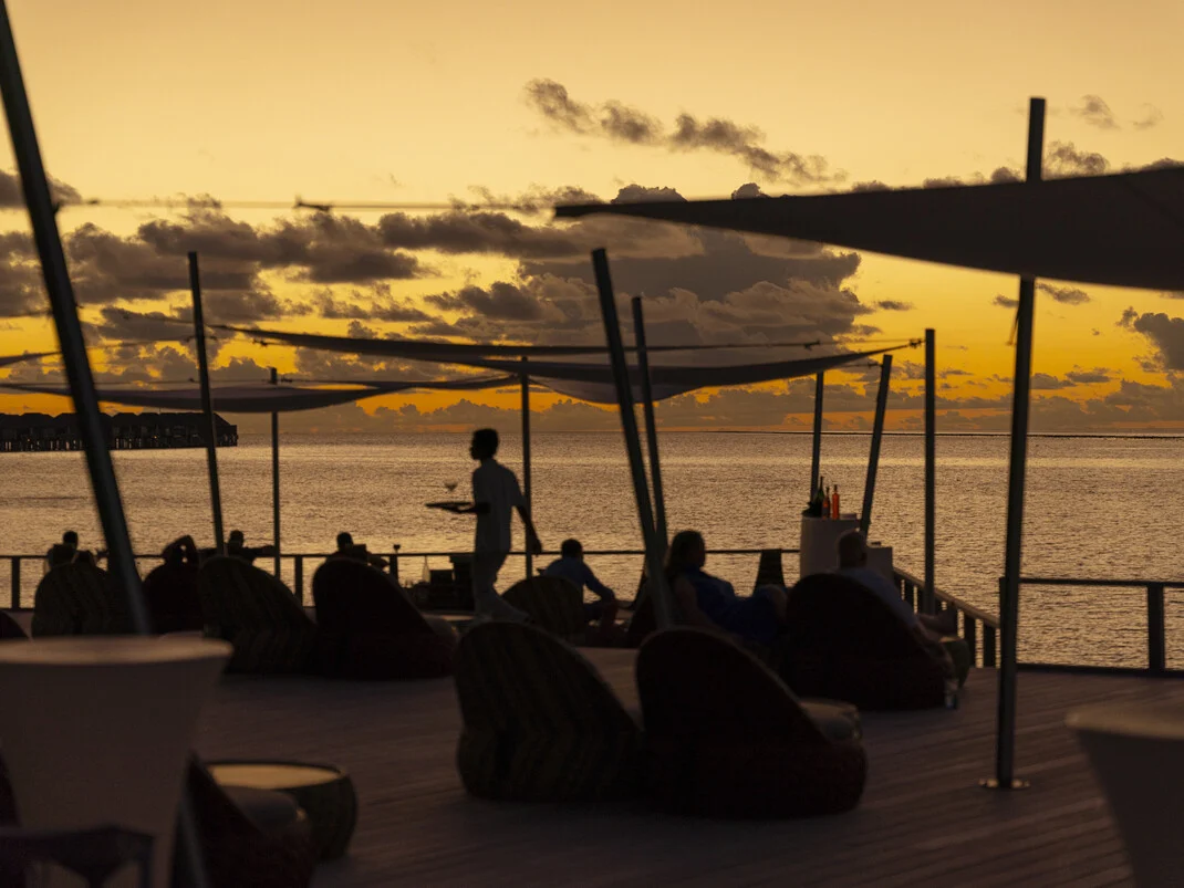 I loved the laidback vibe of the resort, set on a smaller island that offers a more intimate experience, perfect for couples seeking a peaceful escape. The stunning beach, with its white sand and crystal clear water, and the breathtaking colours of the sea will captivate you at every turn. It's a paradise for food lovers, with a wide range of tasty dishes from around the world, including open-air buffet lunches set right on the sand. The Chill Bar is a must visit for sundowners and tapas-style dishes, best enjoyed while taking in the most amazing sunset views. Add to that live music and cocktail parties several times a week, plus an incredible overwater spa, and you have the perfect blend of relaxation, indulgence, and island charm.