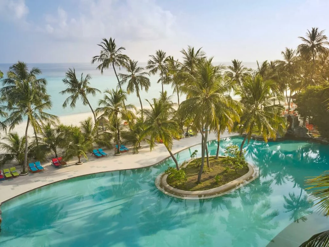 Nestled between the island’s lush vegetation and leading out to the lagoon, these stylish and spacious ocean-view villas offer absolute privacy with vibrant interiors blending seamlessly with the tropical surroundings.
