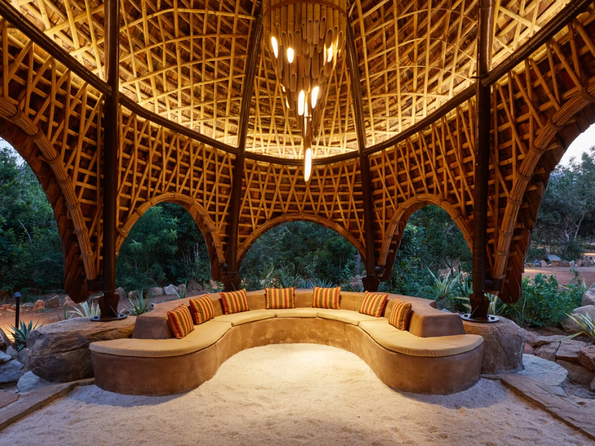 Wild Coast is part of the Resplendent Ceylon circuit, created by the family-owned Dilmah Tea Company. It's one of three Relais & Chateaux resorts along with Tea Trails and Cape Weligama, forming a delightful 'Route de Bonheur (Happiness)' from tea fields to clifftop beach and safari lodge. Wild Coast Tented Lodge is located on a rugged beach bordering Yala National Park, where the jungle meets the Indian Ocean. The lodge offers 28 vaulted Cocoons & Urchin tents, providing the comfort of a luxury hotel with the thrill of a raw wilderness experience. The open-air bamboo-clad Den and Dining Pavilion, designed to mimic the boulders on the beach, overlooks the free-form swimming pool. Guests can enjoy daily-changing menus of authentic Sri Lankan cuisine and sunset cocktails and picnics on the sand dunes, with views of the Indian Ocean as dusk settles in.